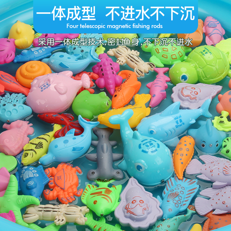 Double shell fishing toys kids puzzle boys and girls pool set magnetic 1 one rod 2 to three 6 two and a half to 3 years old baby