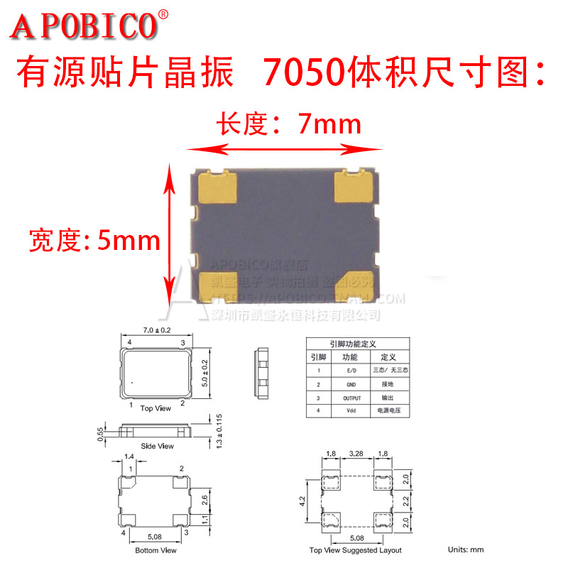 7050 patch active crystal vibration 1M 4 8M 10 12 16 20 24 25 30 40 48 50 100MHZ