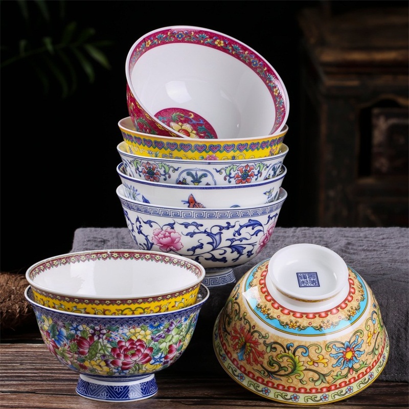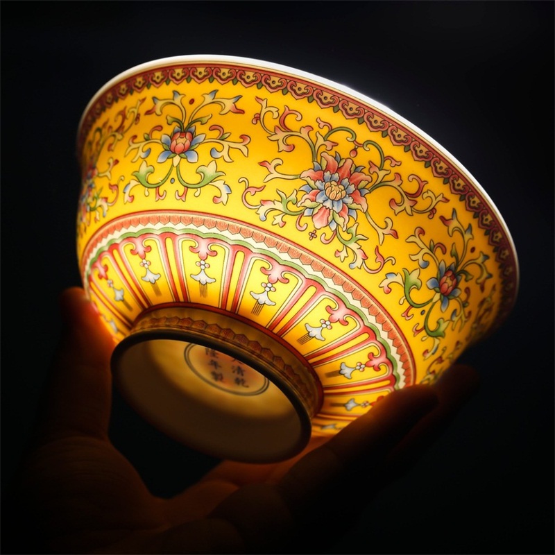 Red enamel 4 5-inch Golden Bell Bowl Jiuyang Shou Peach 5-inch Austrian Bowl (in the bowl) icing on the cake 4 5-inch high Bowl yellow bottom Lotus 4 5-inch tall bowl red enamel 4