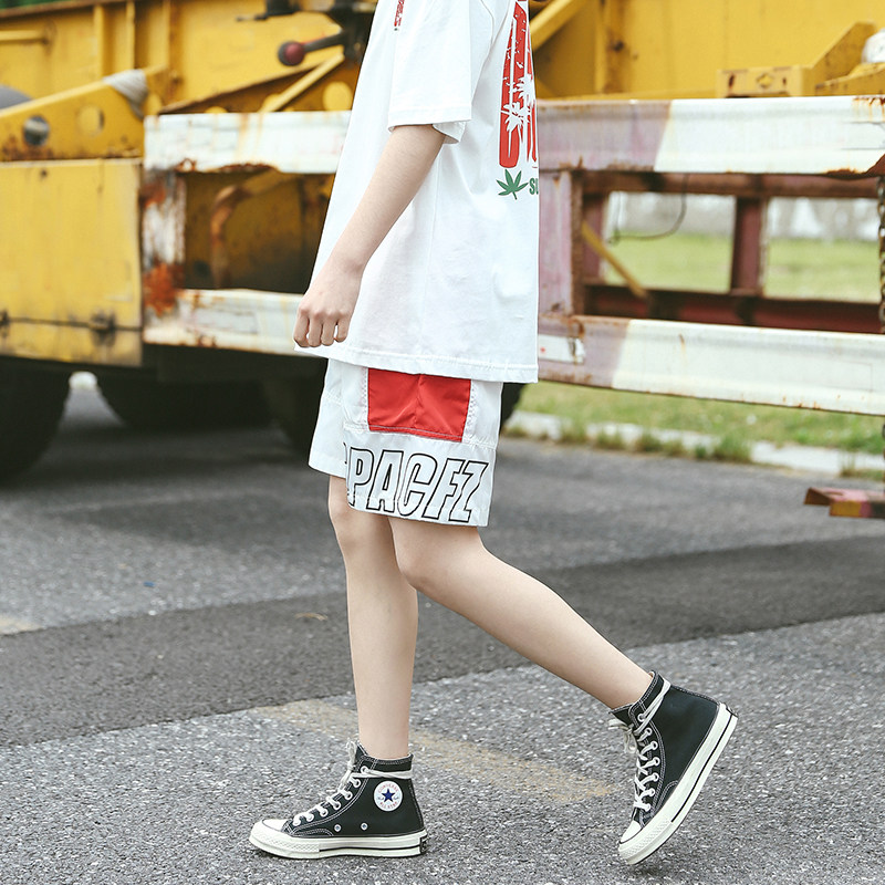 Stitching contrast casual shorts women's high waist A word loose wide leg student pants sports five-point pants bf trend