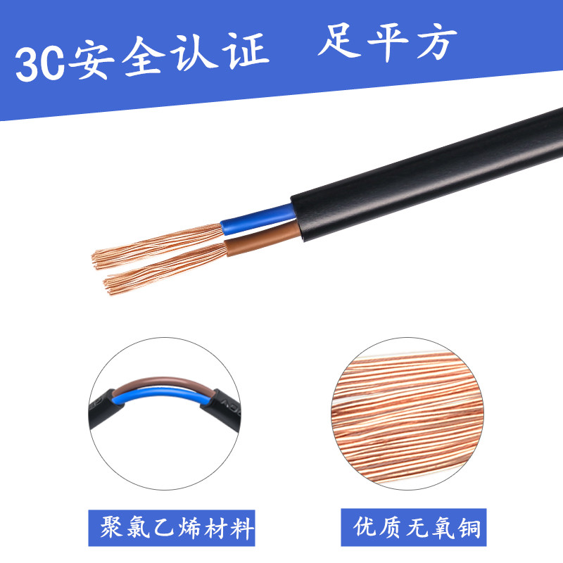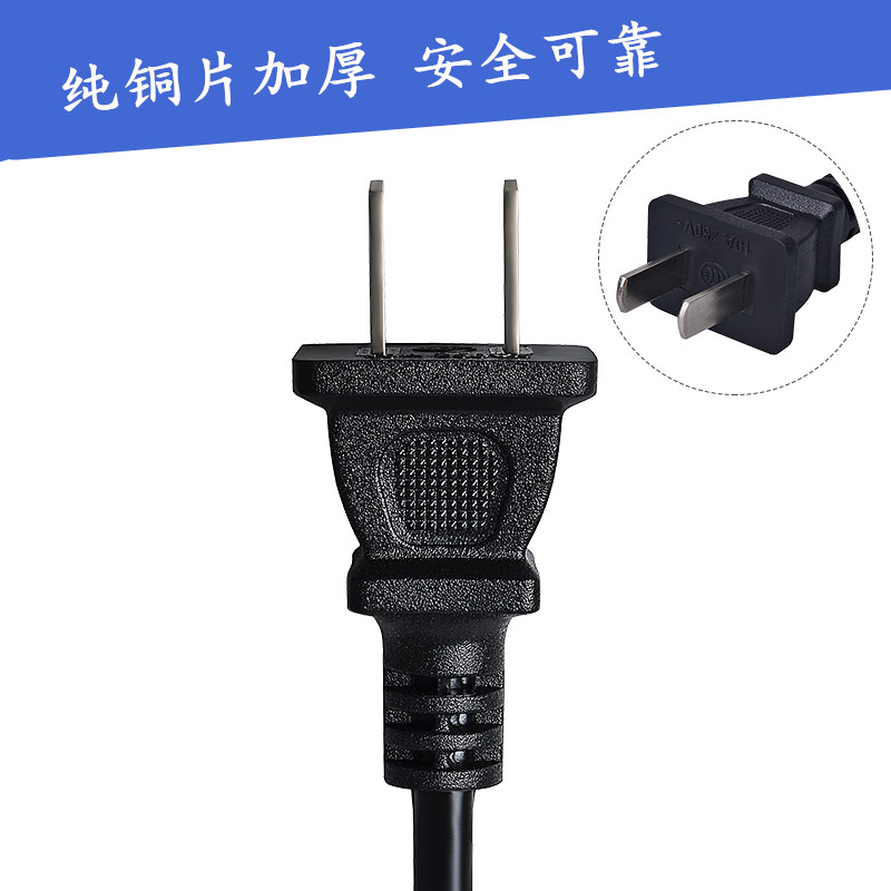Pure copper national standard power cord with plug 2*0 75 flat two feet two items two plug two-core power cord plug line 2 cores
