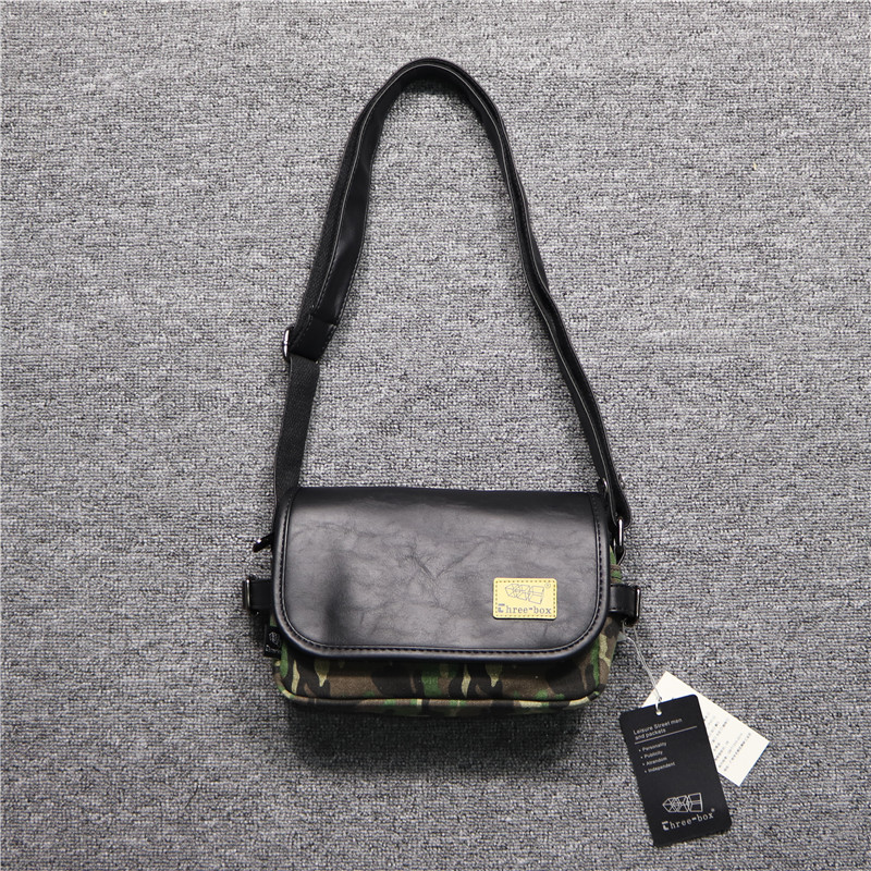 threebox Korean version day ensemble men's single shoulder bag casual military green camouflage diagonal cross-pack canvas chest bag men's bag