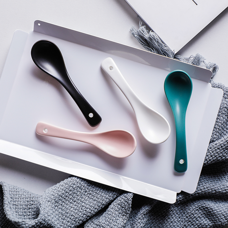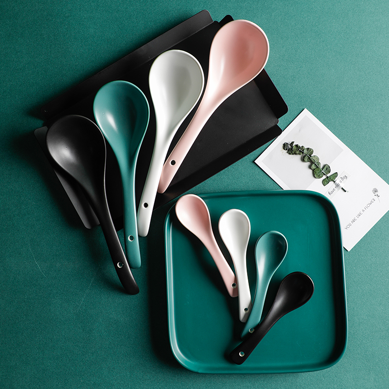Small spoon of color glaze - small spoon of white glaze - small spoon of black glaze - small spoon of pink glaze - small spoon of dark green glaze - big spoon of yellow glaze - big spoon of white glaze - black Glazed soup