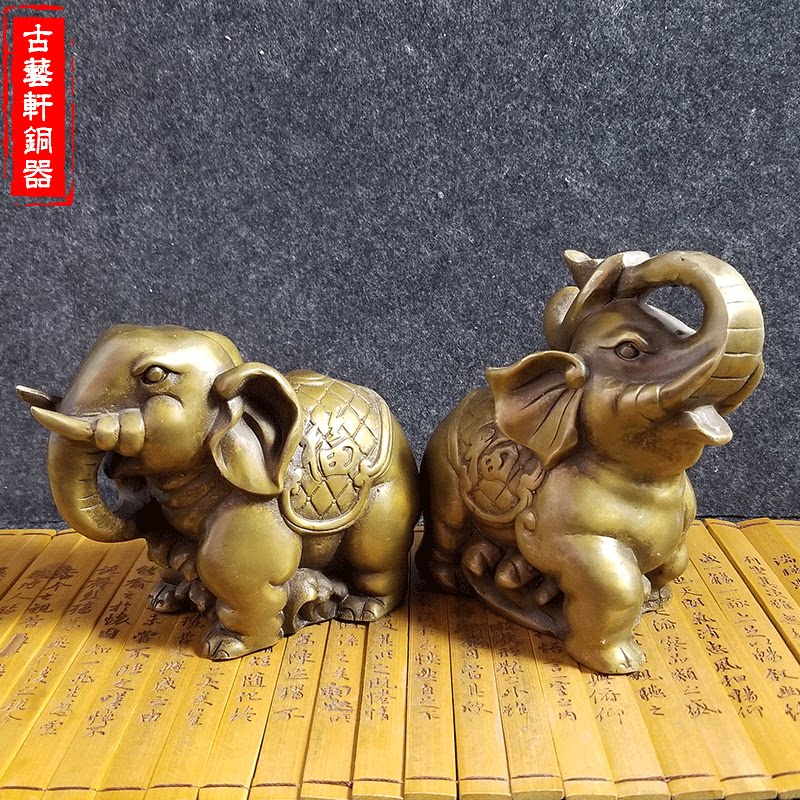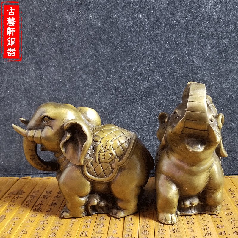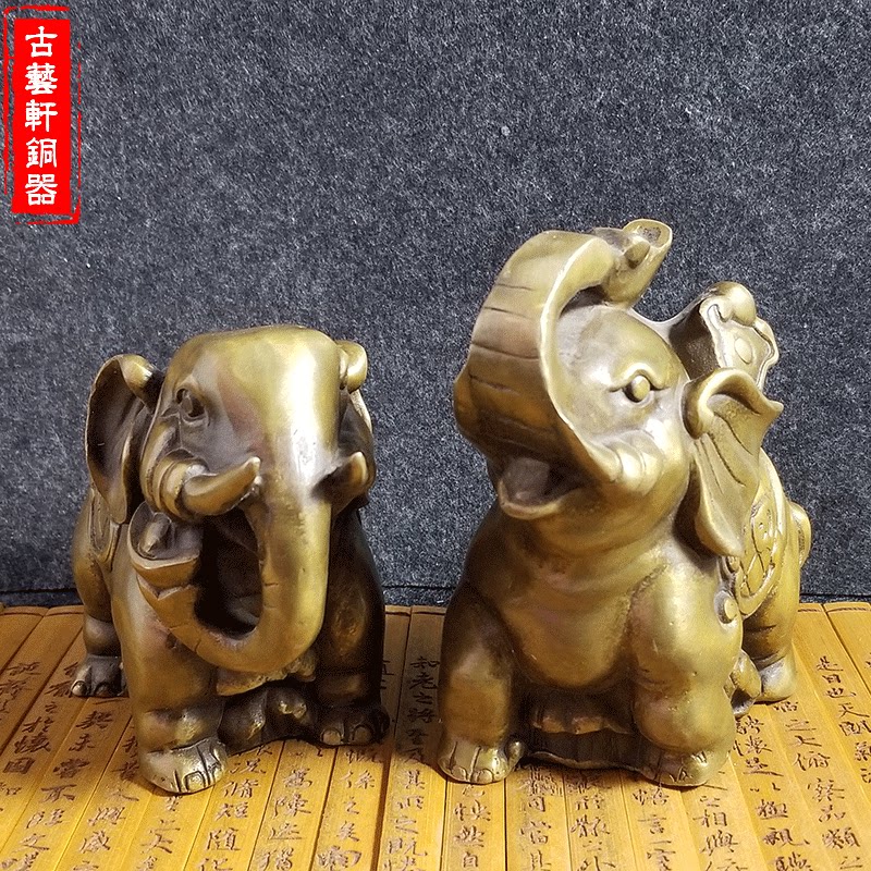Pure copper elephant pendulum decorated with a pair of water-absorbent elephant Feng Shui Elephant Bronze Elephant Crafts Gift Hem Accessories Shop Opening Gift