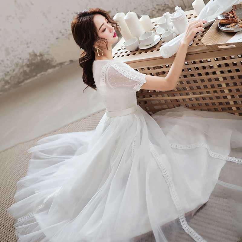 Korean style light wedding dress 2021 new bride simple atmosphere wedding dress out of the small man travel shoot women show thin dress skirt