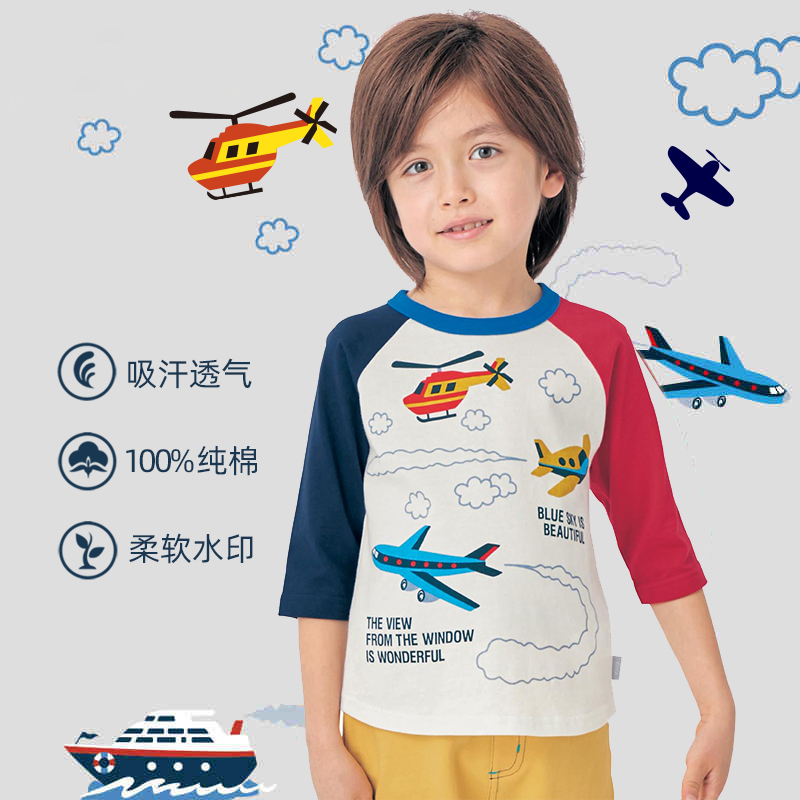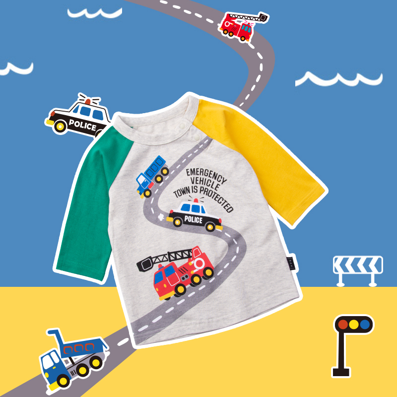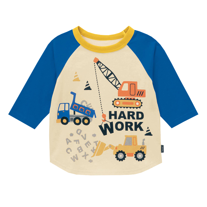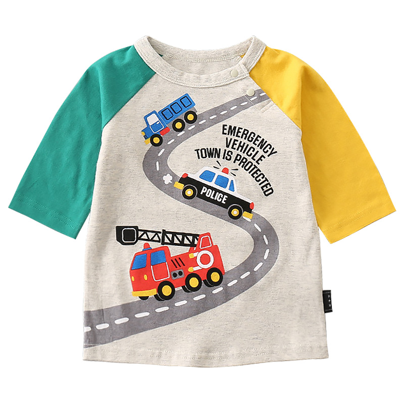 Qianqujia children's three-quarter sleeve cotton color-blocking T-shirt boy car top Japanese boy bottoming shirt engineering car