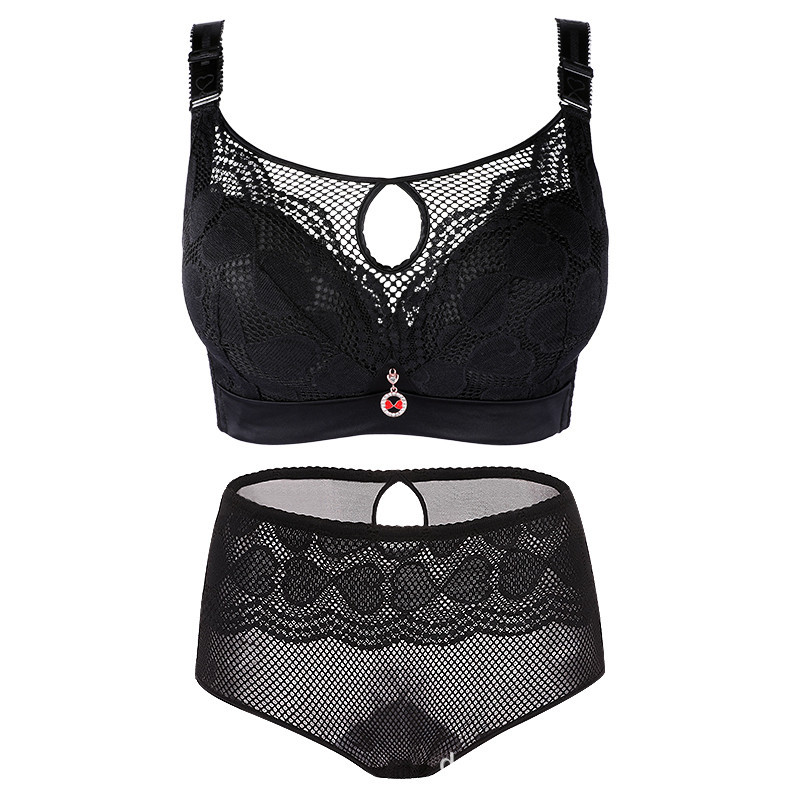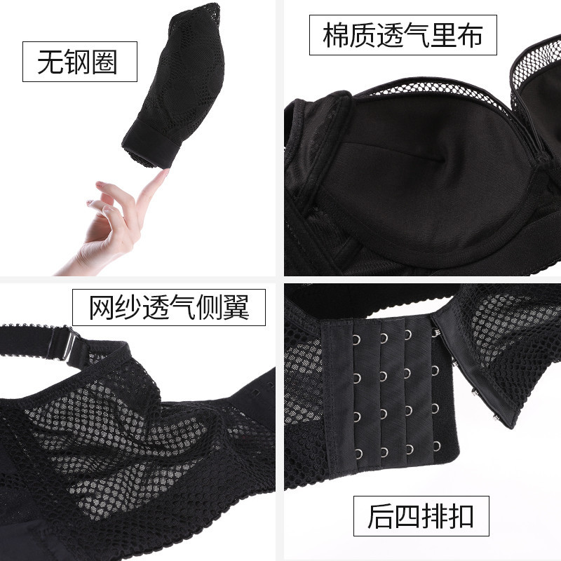 Fat mm250 pounds thin plus fat size black bra large cup breathable gathered without rim underwear set