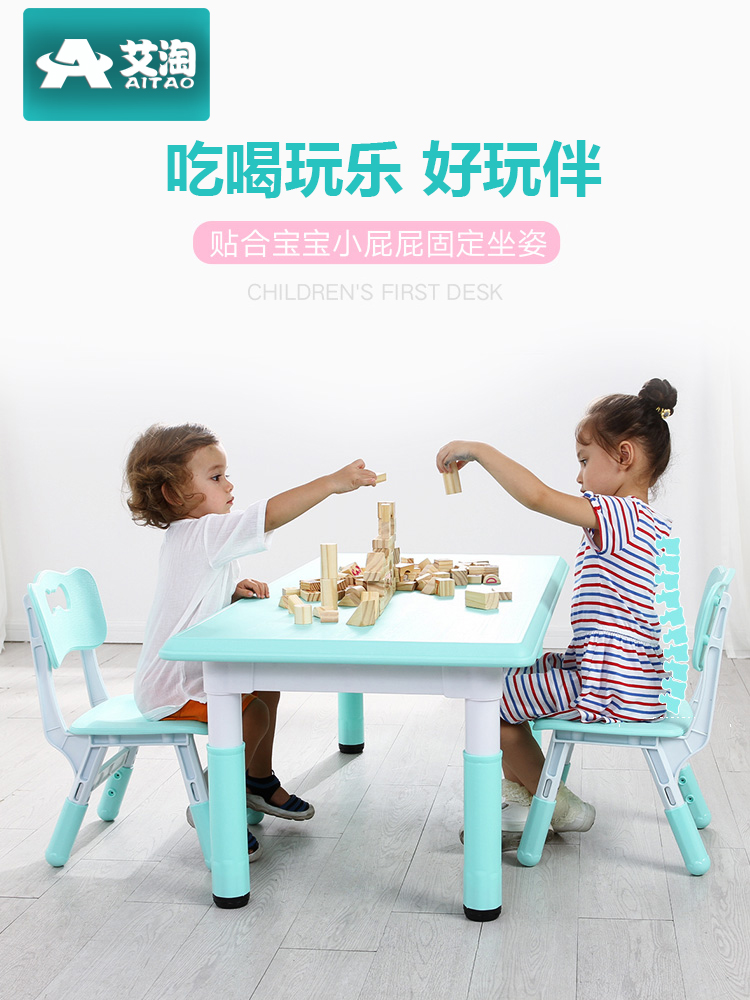 Children's Toys Learn Writing Desk Baby Table And Chairs Suit Kindergarten Table Plastic Rectangular Small Chair Home-Taobao