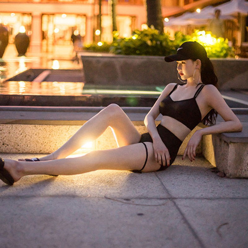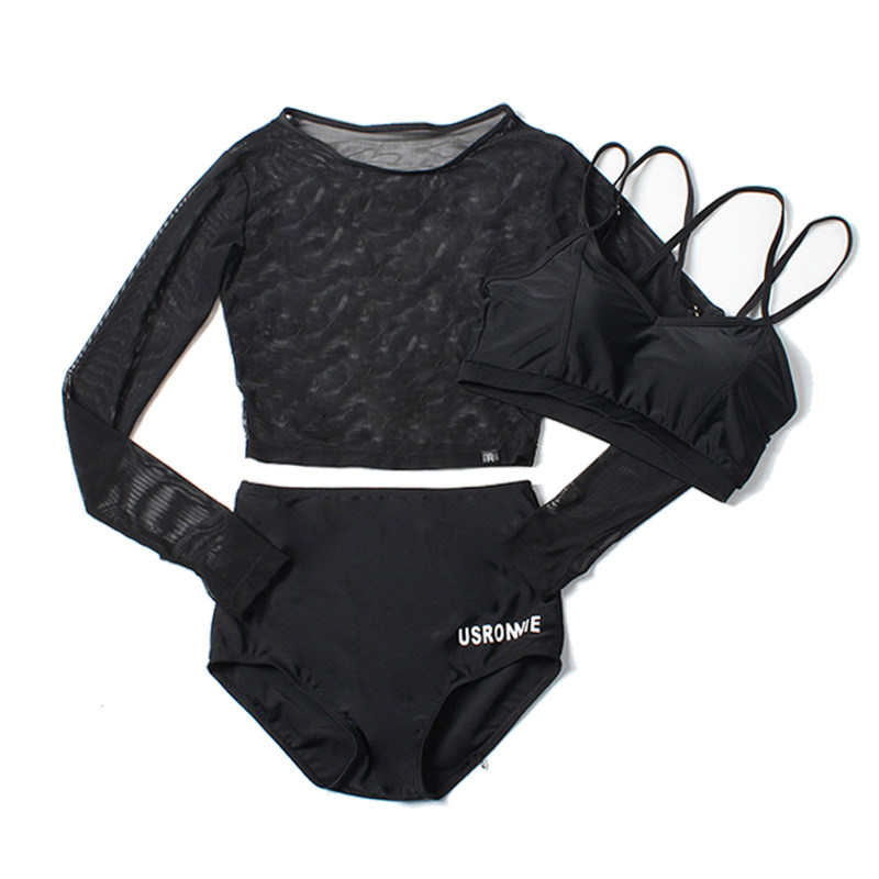 Swimsuit women's summer three-piece set 2021 new cover belly thin Korean hot spring gathered long-sleeved two-piece sexy swimming suit