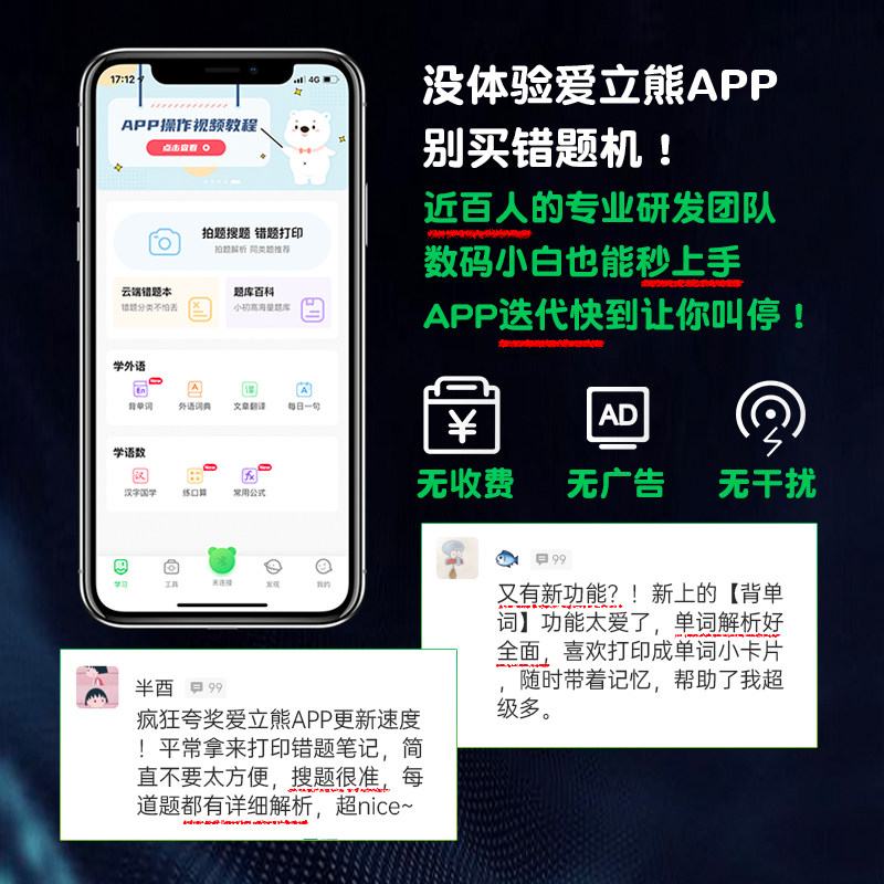 Weya recommended Ai Li Bear HD wrong question printer Finishing artifact Hand account learning without copying Ai Li Bear pocket Meow Meow p2 Home Goo Goo student fan Small cheap shoot question portable