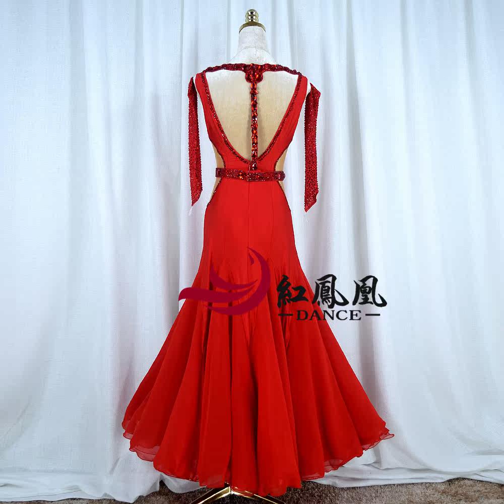 Red Phoenix High-end Morden Dance Professional Competition Dress Custom Grand Pendulum Skirt National standard social dance performance BR873