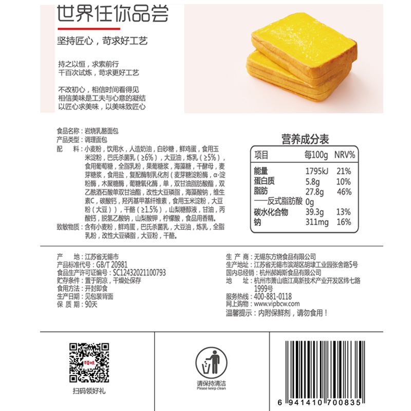 Full Reduction (Baicao Flavor-Rock Grilled Cheese Toast 200g) Breakfast Bread Hand Tear Cake Net Red Snacks