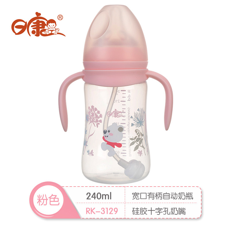 Nikon RK-3129 3127 wide mouth with shank PP bottle with gravity ball automatic straw color random