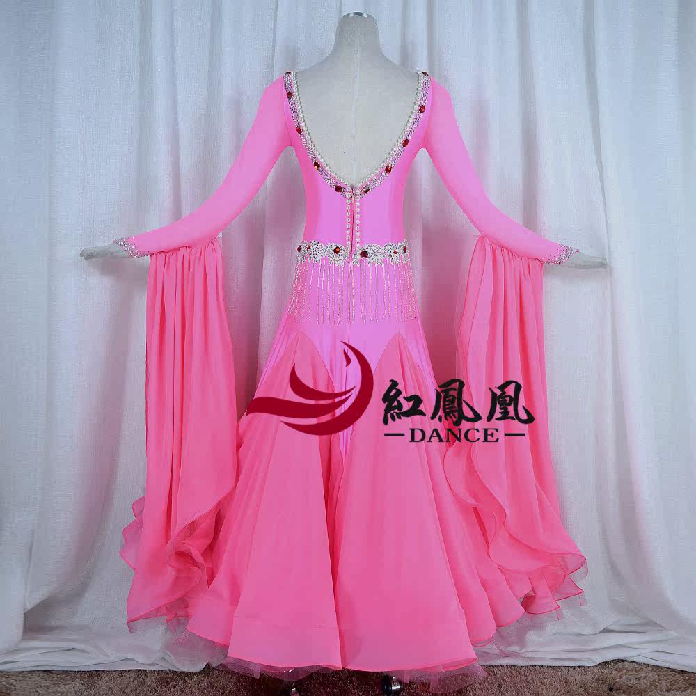 Red Phoenix New Morden Dance Professional Competition Dress Custom National Mark Social Dance Performance Suit Big Swing Dress BR875