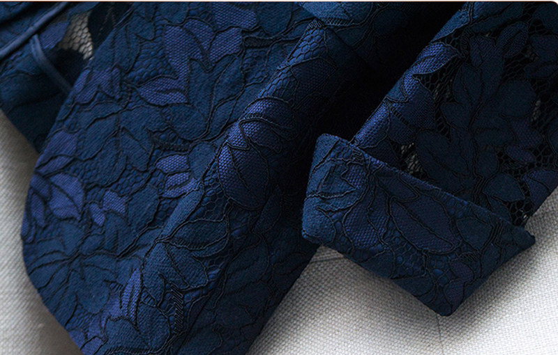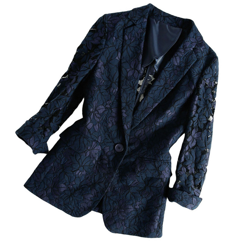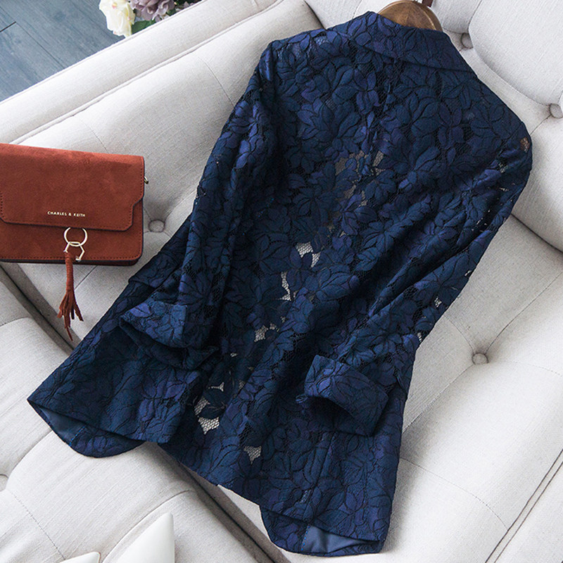 Lace Suit Jacket Woman Summer Thinout Hollowed-out 70% Sleeve Back Medium Long Version Casual Little West Suit Jacket Temperament