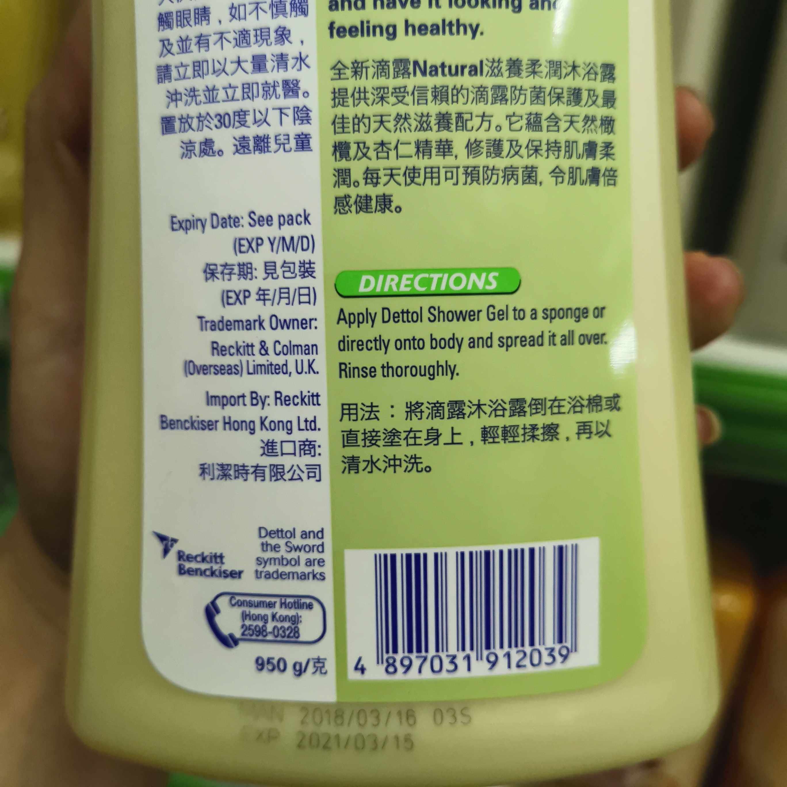Dettol drops out of the water.