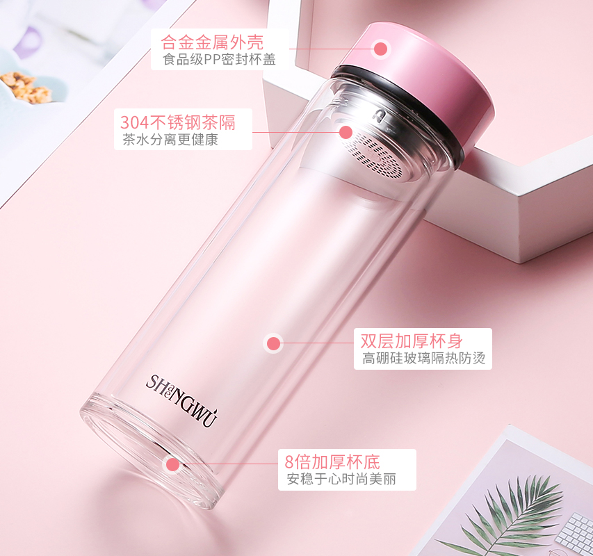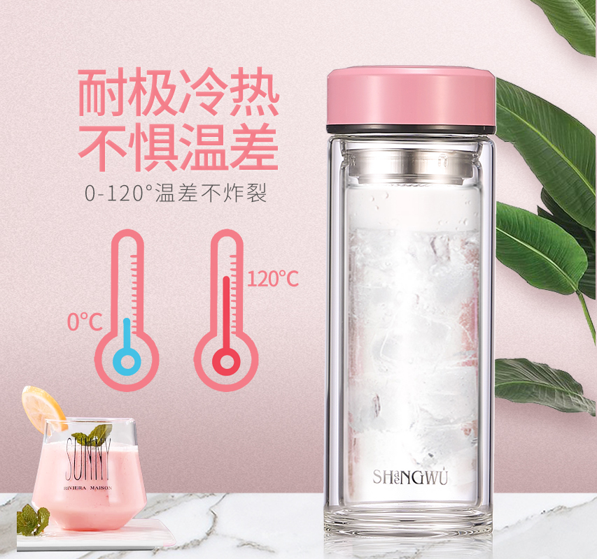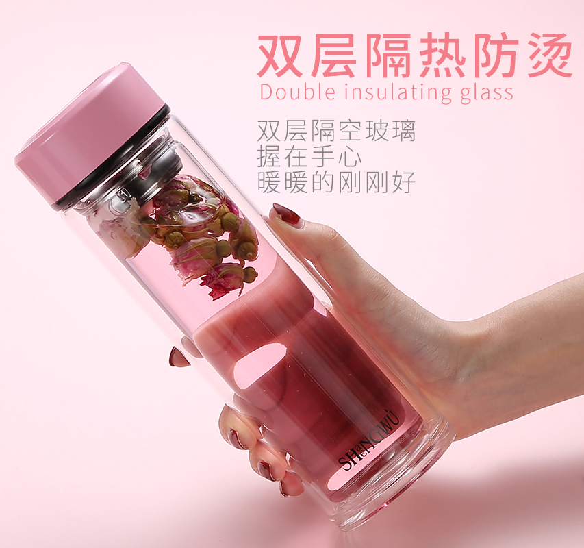 Glass-cup double-layer insulated water glass between male and female students Large-capacity portable heat resistant home tea cup Business caravan