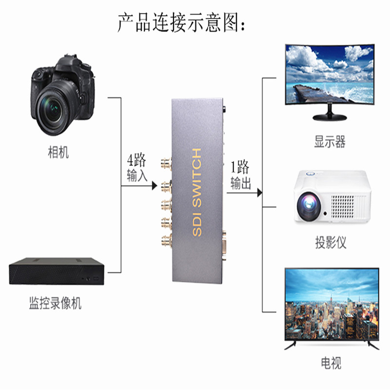 SZHY-LINK 4-way SDI switcher 4-in 1-out with remote control RS232 four-port SDI switcher sharer 4-in and one-out HD with power supply