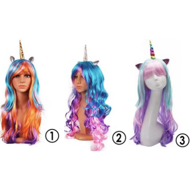 Halloween Ball Colour unicorn Unicorn Wig set pony rainbow Little Ma Rainbow wig COSPLAY Props Long curly hair