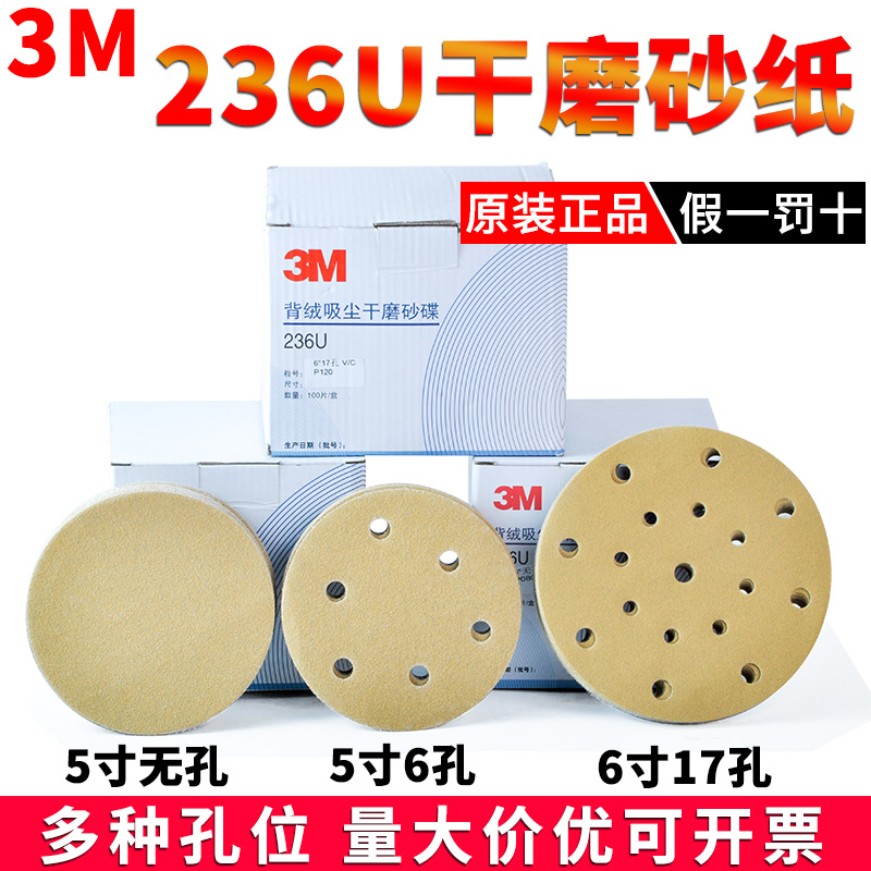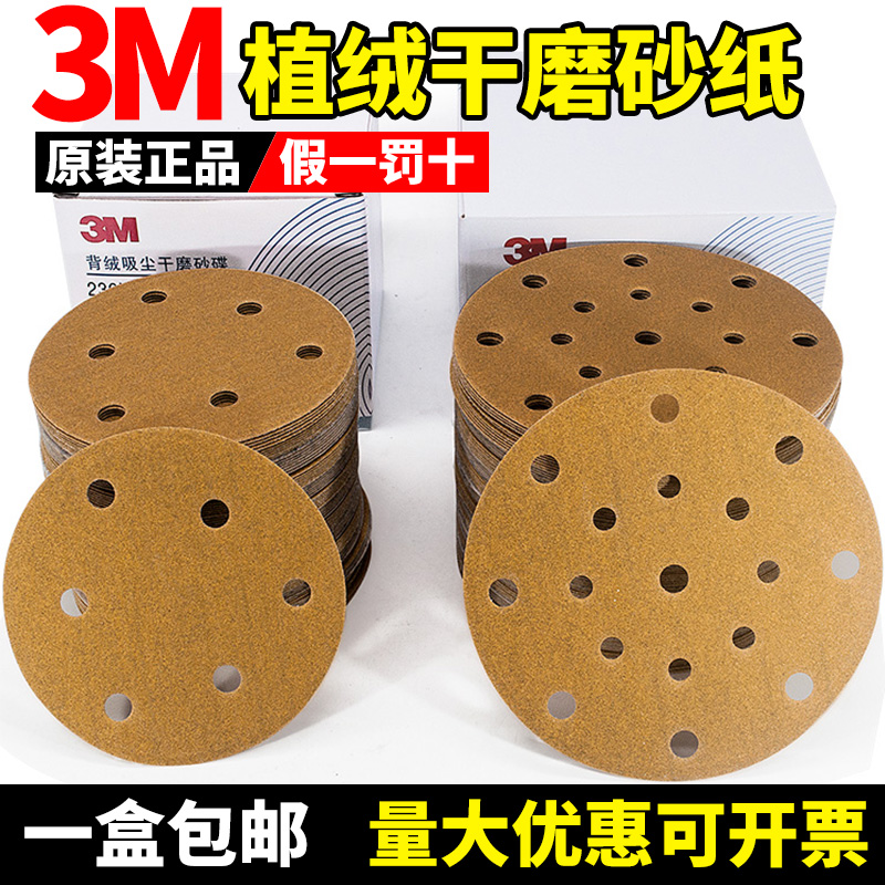 3M dry sandpaper 5 inches 6 holes round flocking yellow sandpaper 6 inches 17 holes pneumatic disc sandpaper putty grinding