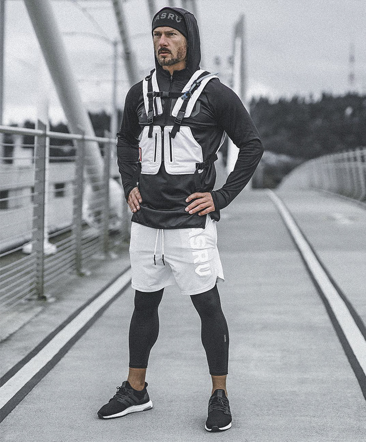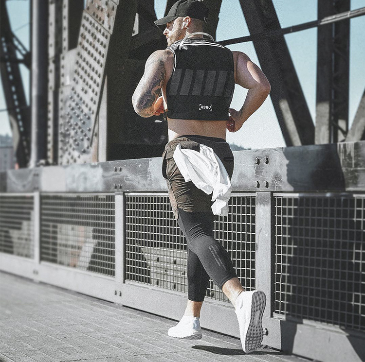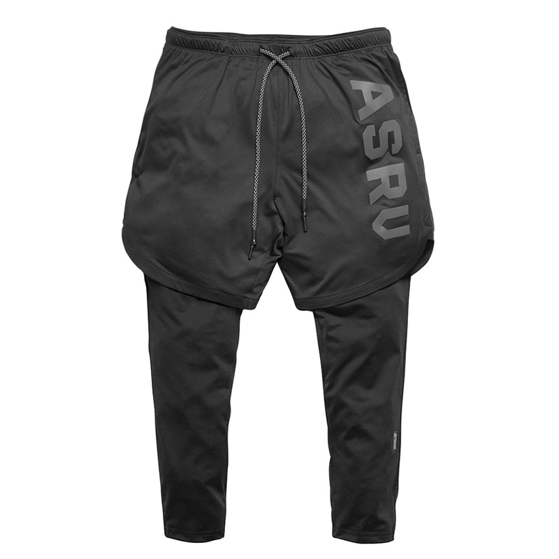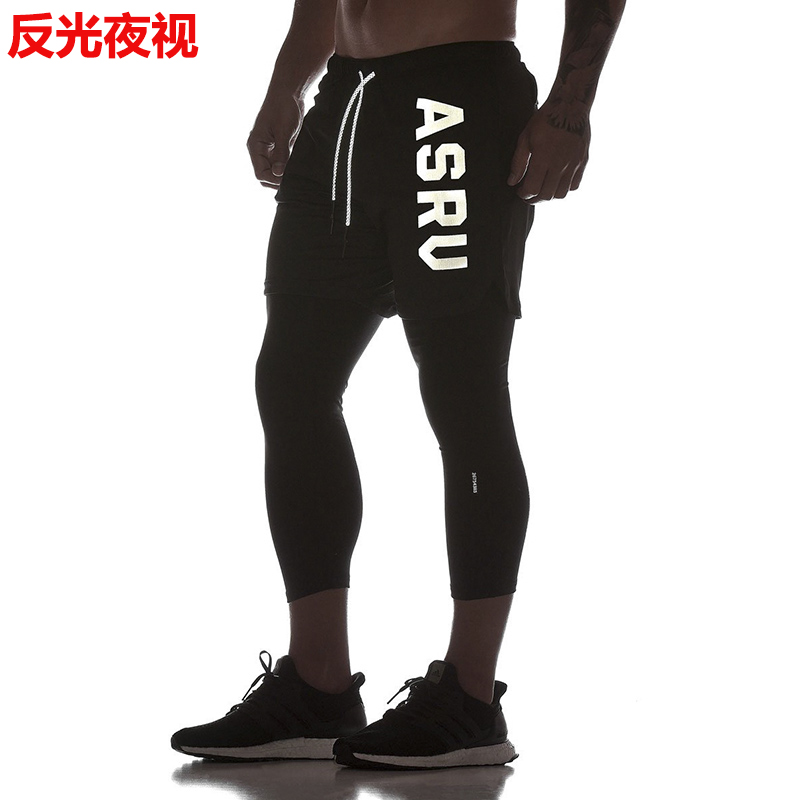 Muscle fitness dog brother running training elastic tights men's fake two-piece sports quick-drying cropped pants summer