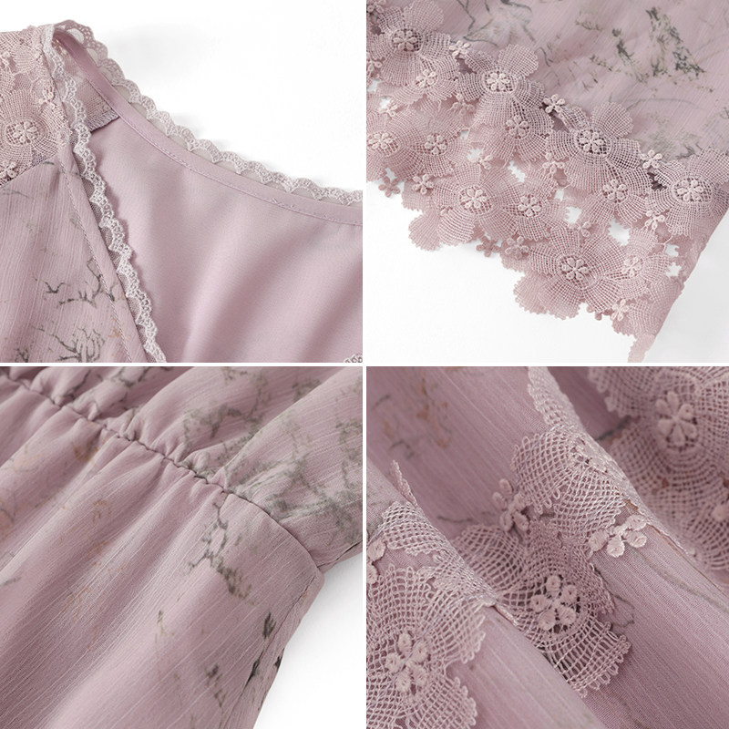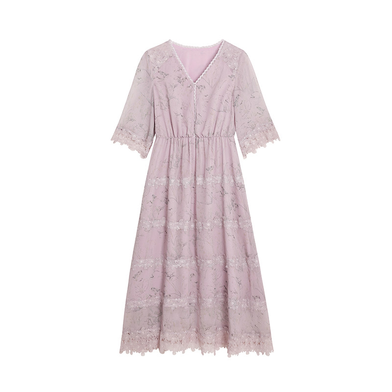 Blue language large size women's clothing Fat younger sister mm2022 Summer dress new temperament Slim Lace Print Foreign Dress