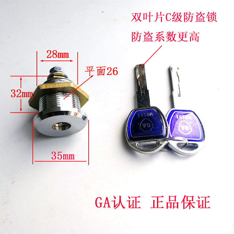 Safe lock cylinder lock head secrecy cabinet gun cabinet merit cabinet curve key anti-theft C grade all steel copper core main lock