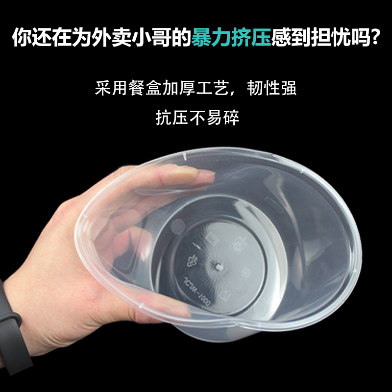 Round disposable lunch box 1000ml transparent plastic fast food delivery packaging box fruit box soup bowl with lid