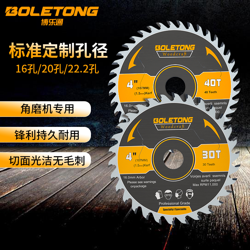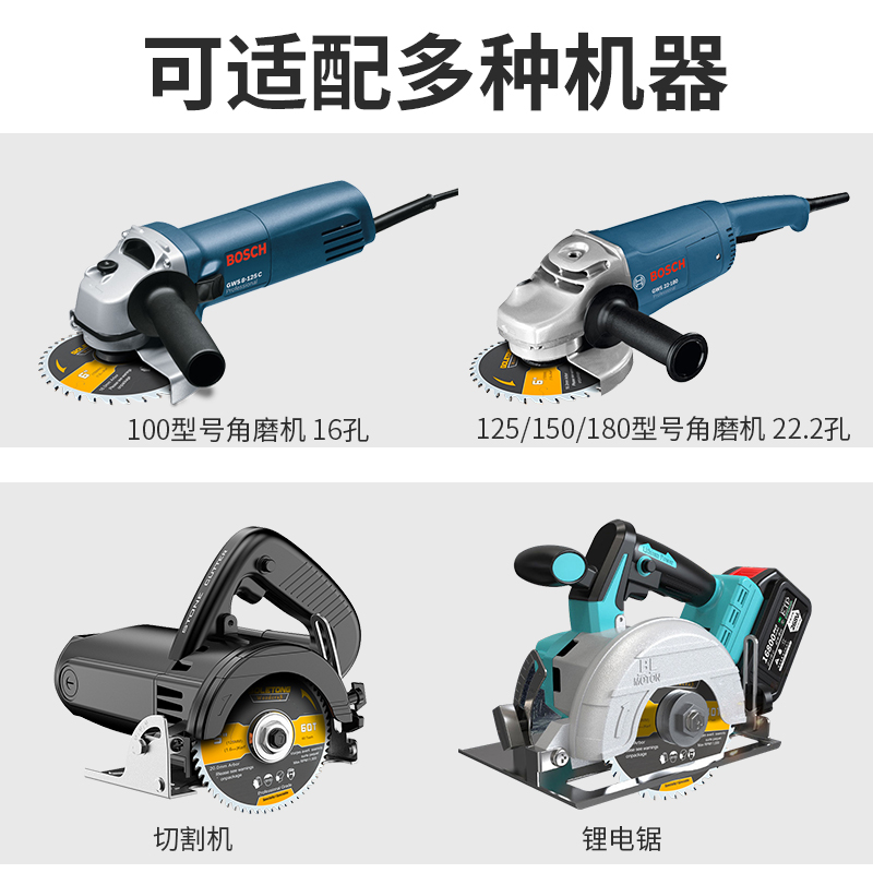 107x30 tooth x 16 holes (100 type angle grinder) 110x30 teeth x 20 holes (cutting machine 4 inches) 107x40 teeth x 16 holes (100 type angle grinder) 110x40 teeth x 20 holes (cutting machine 4 inches) 125x40 teeth x 16 holes 125x40 teeth x 20 holes (dustless saw 5 inches) 125x60 teeth x 22.2 holes 125x60 teeth x 20 holes (dustless saw 5 inches) 150x40 teeth x 16 holes 150x60 teeth x 22.2 holes 150x40 tooth x 20 holes (dustless saw 6 inches) 150x60 teeth x 20 holes (dustless saw 6 inches) 180x40 teeth x 25.4 holes 180x60 teeth x25.4 holes 230x60 teeth x25.4 holes 165x40 teeth x 165x60 teeth x20 holes