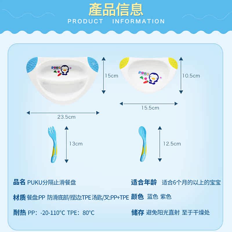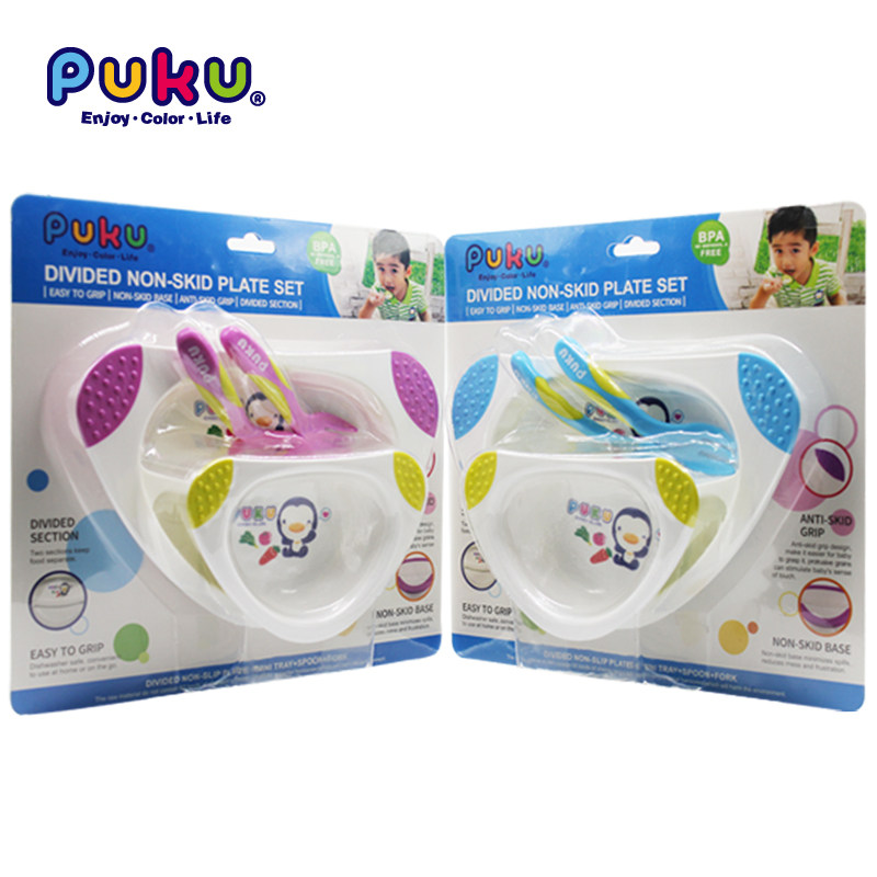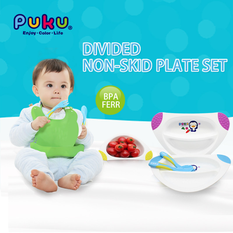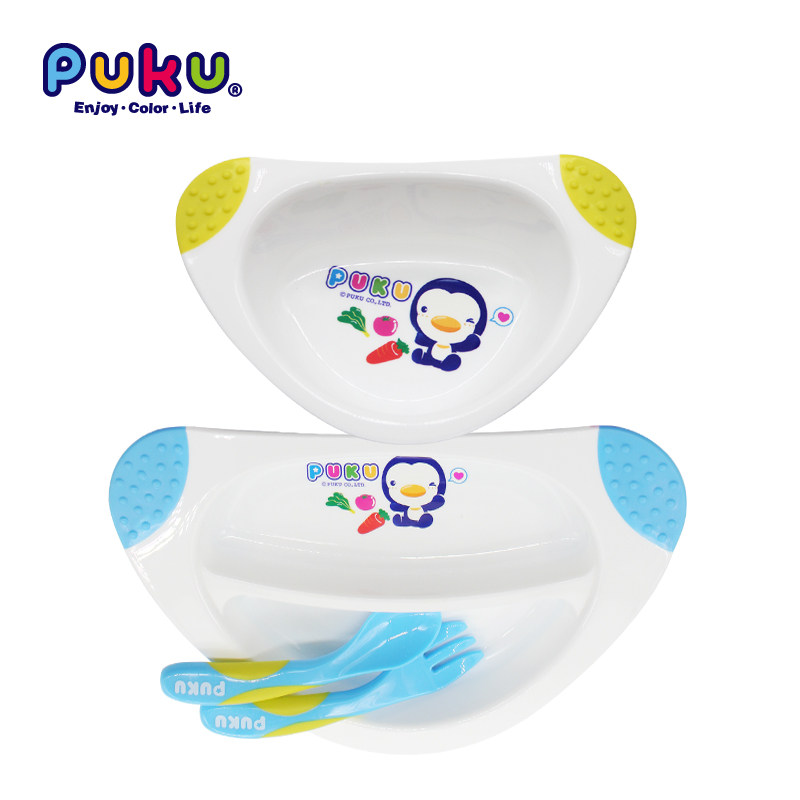 Taiwan PUKU baby bowl tableware binaural non-slip children's bowl baby meal size dinner plate set with spoon bowl