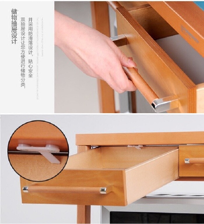 Li Kuai solid wood kitchen shelf European style microwave oven floor to ceiling oven rack Mobile storage cart kitchenware storage rack