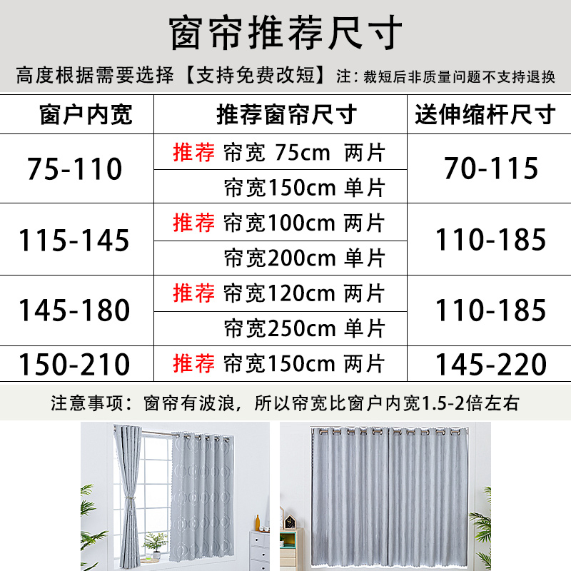Free cut #custom customer service curtain width 0 75*height 2 meters (window width 50-55cm) gives S rod curtain width 1 2*height 1 5 m (window width 55-75c)