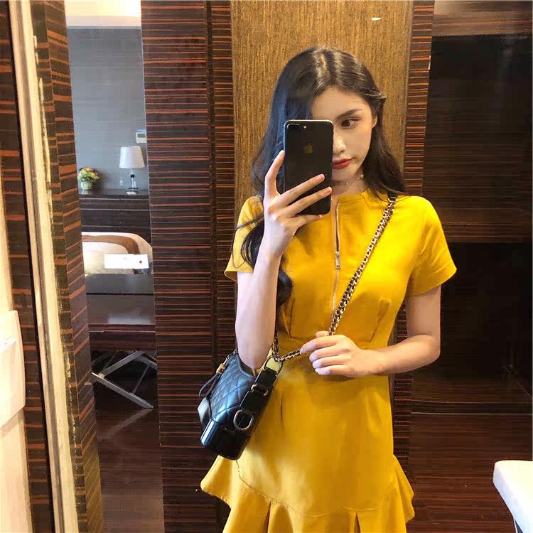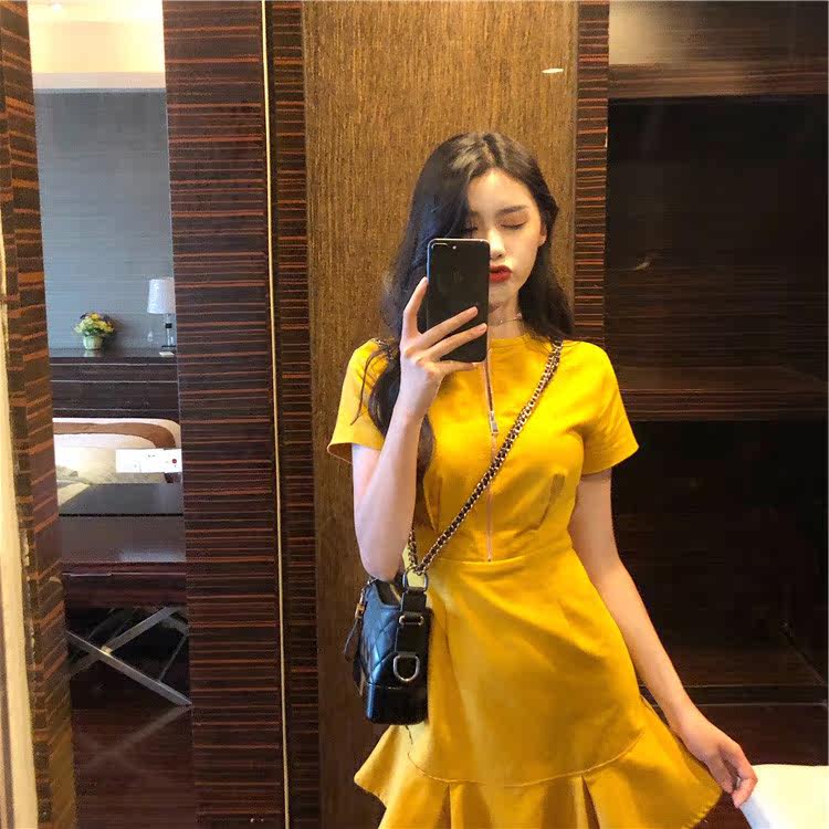 Ocean dress 2022 new summer and Korean version with careful machine cashew waist display slim dresses fairy supersenssen goddess of Hepburn