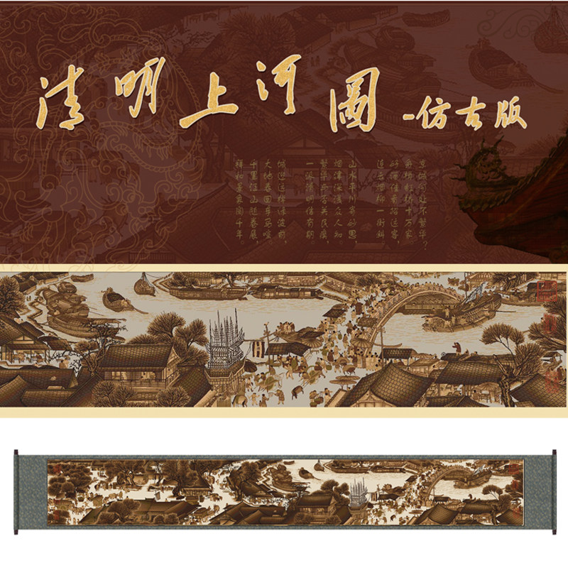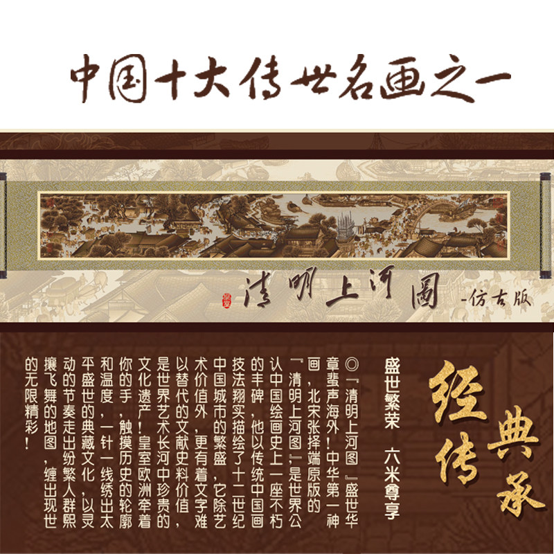 ABV old three cross embroidery pure cotton precision printing China's top ten famous paintings of Qingming River 6 meters