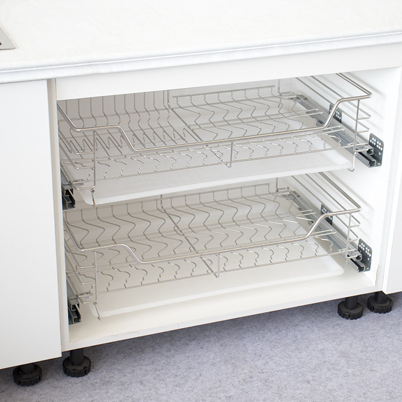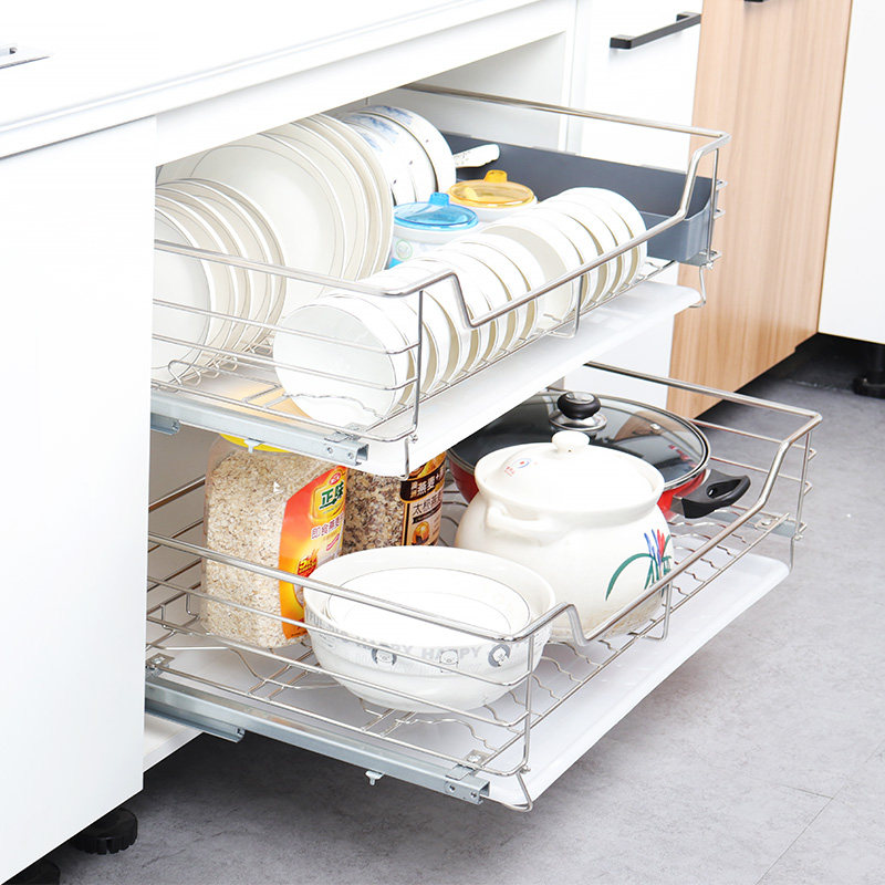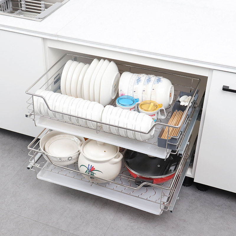 Bowl basket Pull basket drawer type double layer 304 stainless steel integral cabinet Drain basket Water filter storage seasoning dish rack built-in