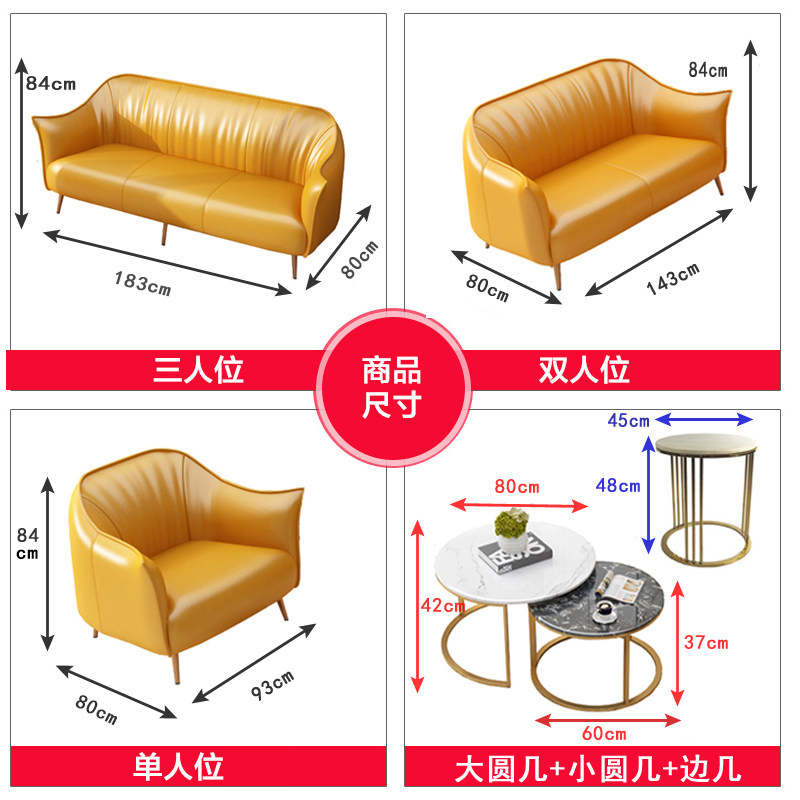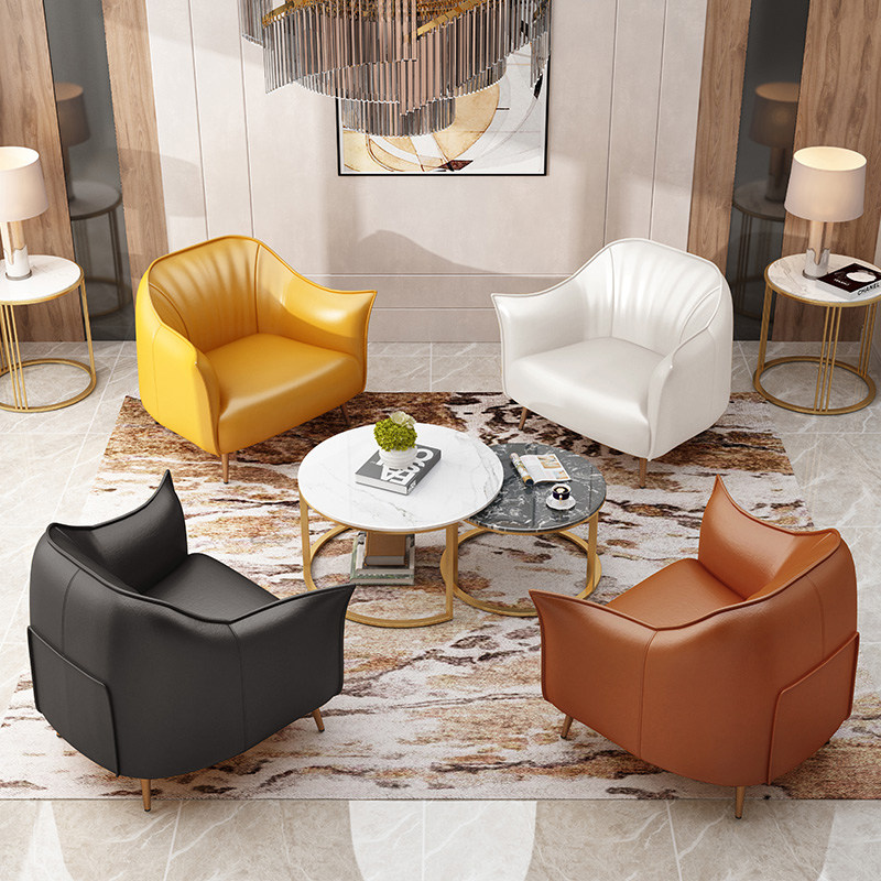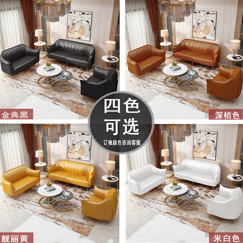 Office sofa coffee table combination set office light luxury sofa simple Nordic leather art single seat sofa gold-plated