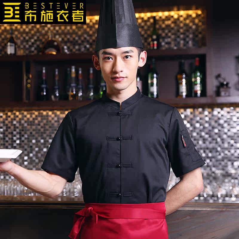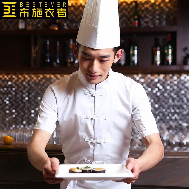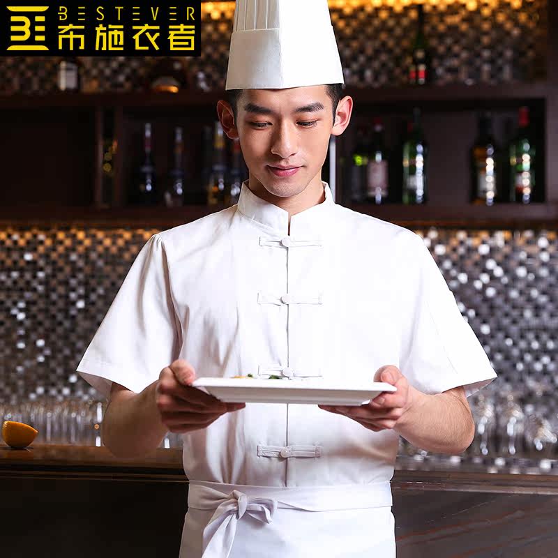 Giver clothes summer white Chinese chef clothes short-sleeved breathable dining room hotel breathable kitchen work clothes