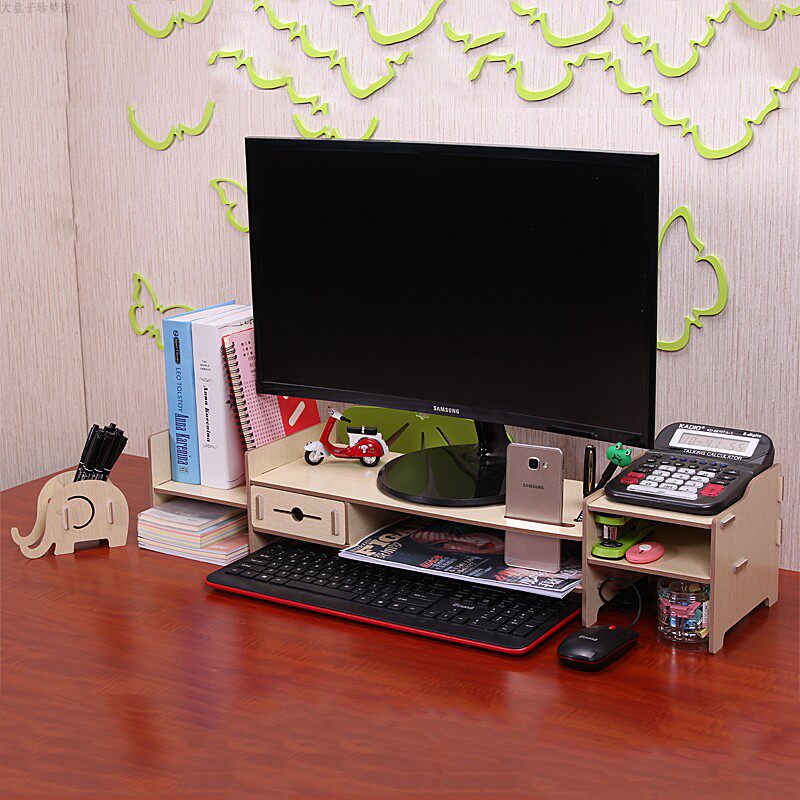 Desktop computer screen elevated bracket girl simple wooden furniture super long office desktop storage box
