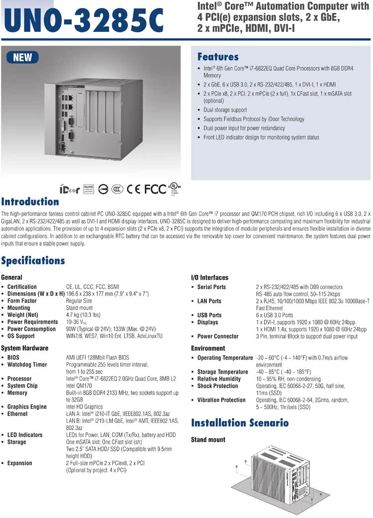 UNO-3285C-674AE Fan embedded industrial computer Core i7-6822EQ