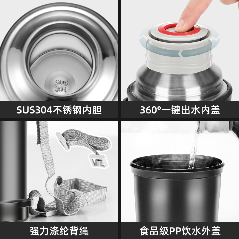 Bunda Insulation Pot Outdoor Portable Men's Heating Kettle Hot Water Bottle Stainless Steel Insulated Cup Large Capacity Large Size Student 2L-Taobao