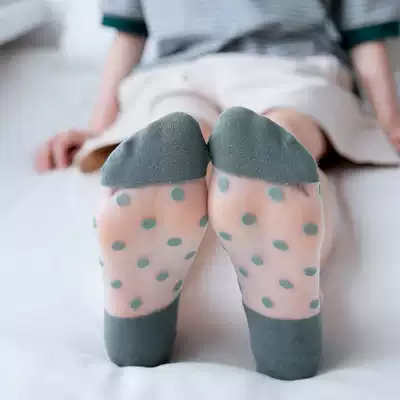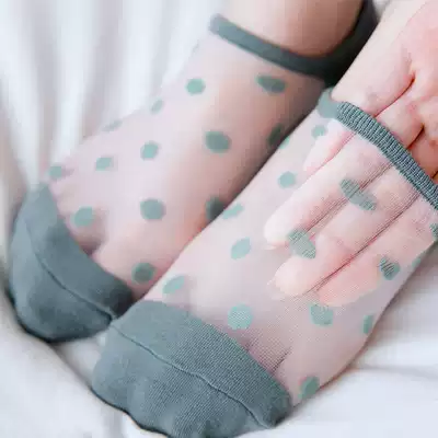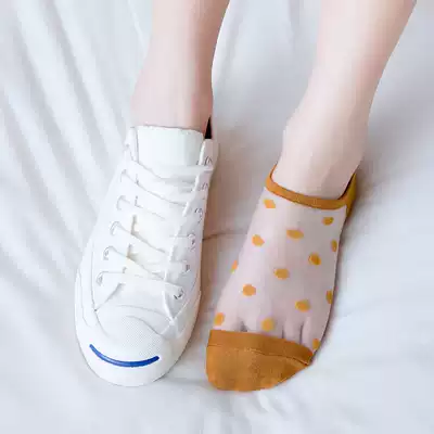 Polka dot socks women's summer thin shallow mouth boat socks retro Japanese polka dot girl mesh instep transparent semi-invisible socks