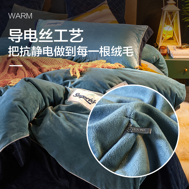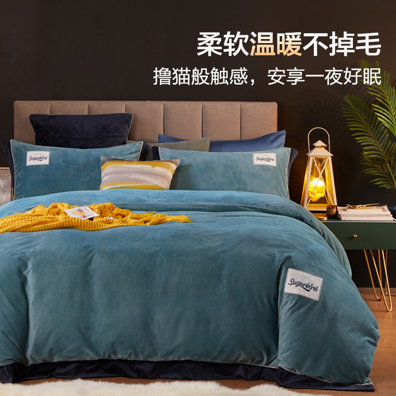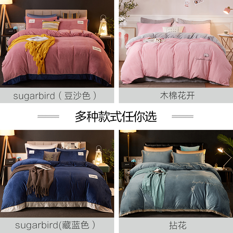 Coral velvet four-piece set-sugarbird blue bed single coral velvet three or four—piece set-Yimeng Coral velvet three or four-piece set—Yimeng (sunset powder) Coral velvet four-piece set—su