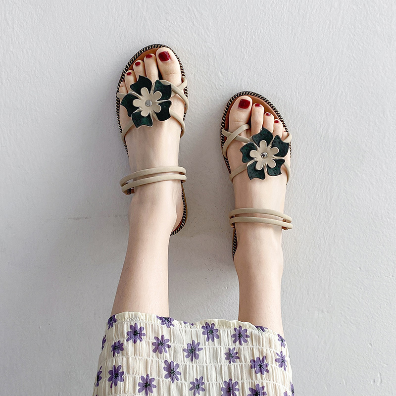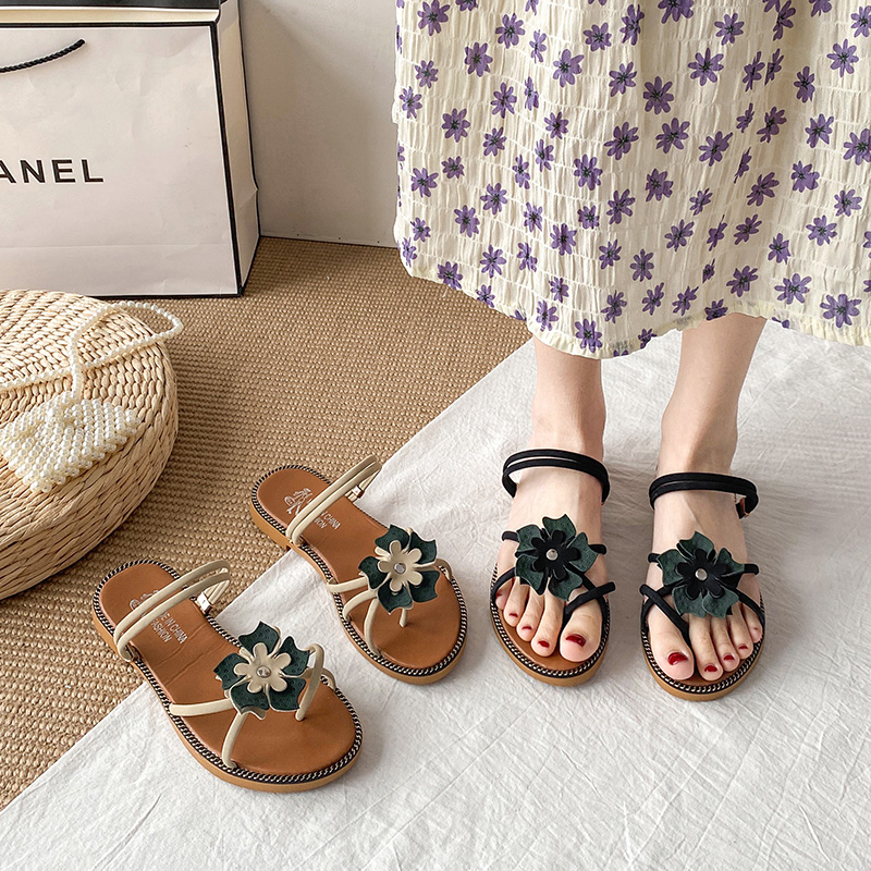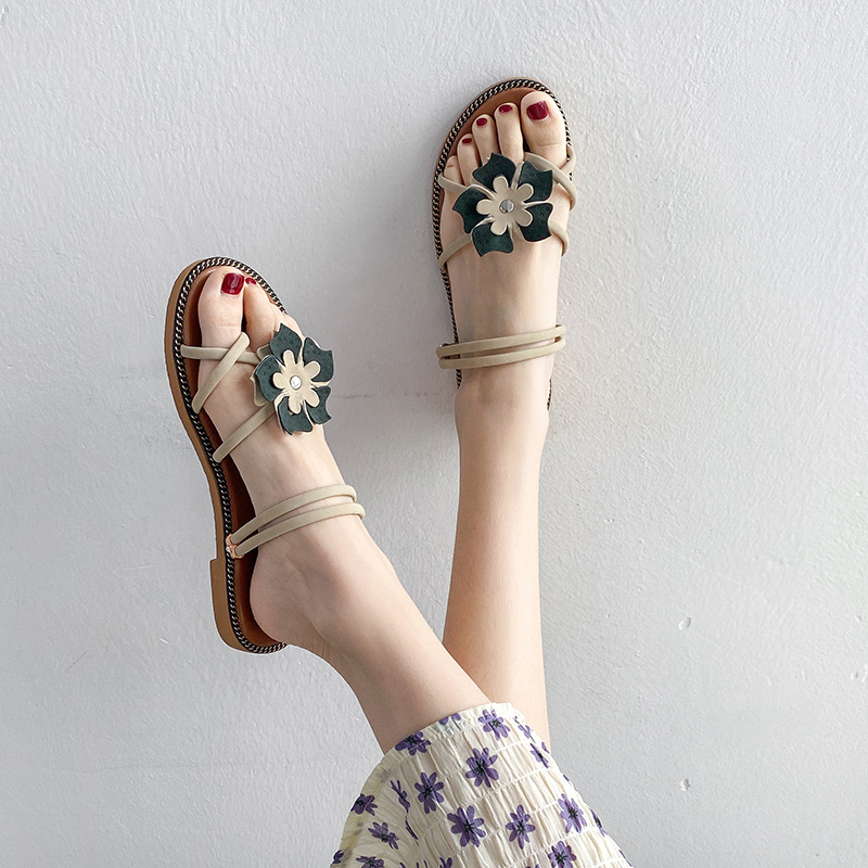 With skirt sandals female 2022 new autumn and winter all-match flowers flat bottom two wear sandals fairy wind sandals sandals