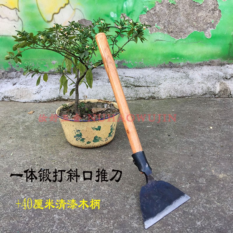 Spring steel oblique blade Agricultural weeding shovel All-steel cleaning shovel Old blacksmith forged pure manual grass push knife hoe