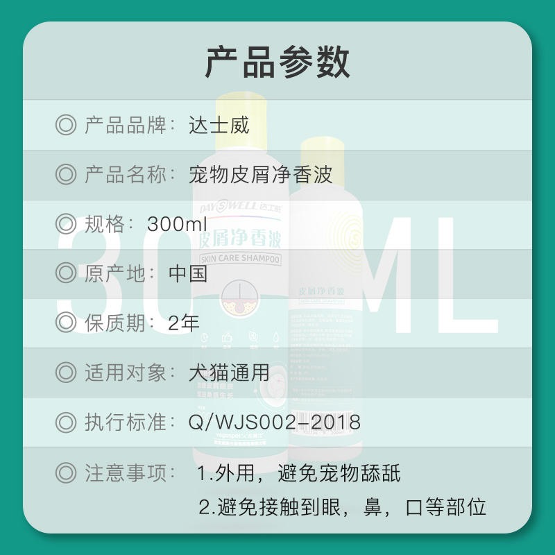 Dasway pet shower gel shampoo cats and dogs general sterilization and mite removal bath liquid products dander net 300ml pack