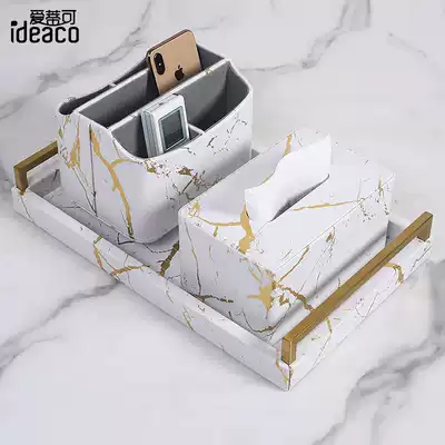 Nordic light luxury black gold marbled remote control storage box creative living room coffee table rotating storage finishing basket