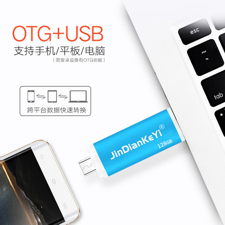 Golden Classic Comfort Cell Phone U Pan 128G Sexual Creativity Cute Mini Metal Anjo OTG Mobile Computer Double Plug Dual-use 128g Car On-board Usb Student U Disc High Speed USB Accompanying Disc