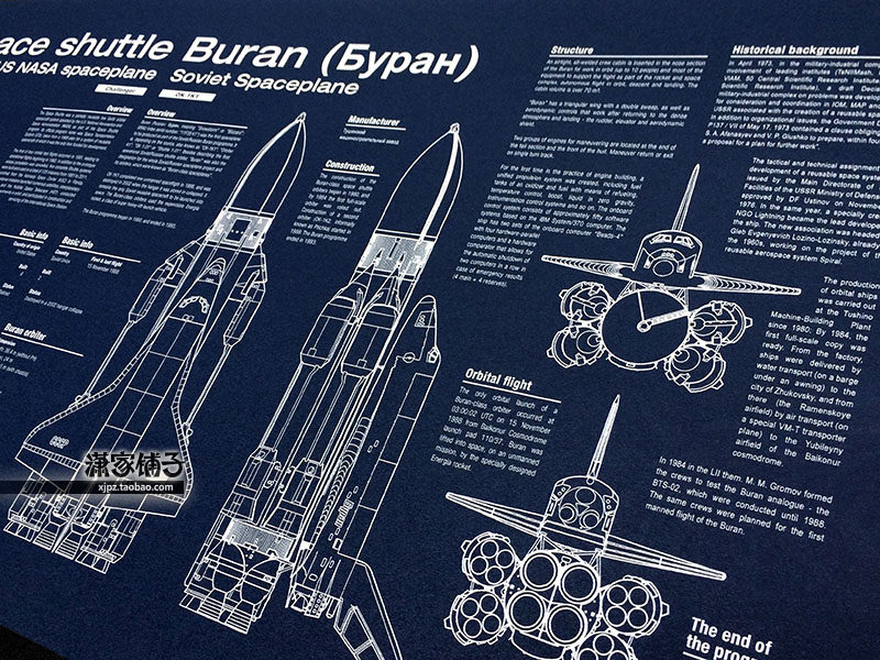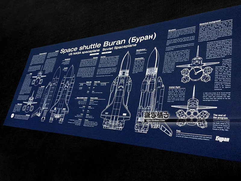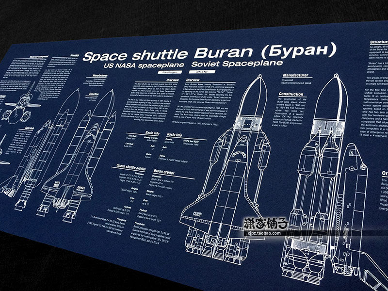 NASA shuttle Buran Soviet Blizzard Spacecraft contrast blueprint decoration painting