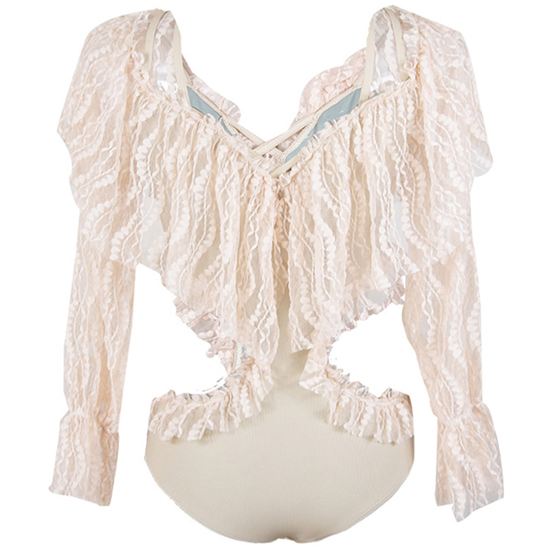 Long sleeve swimsuit woman with a small crowd of sexy leaky waist and beauty back lace florian lace wonderland South Korean spa holiday fairy Fan