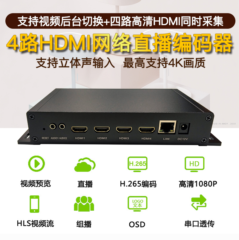 4-channel HDMI HD video encoder srt rtmp udp Network live streaming push stream vmix picture-in-picture h265